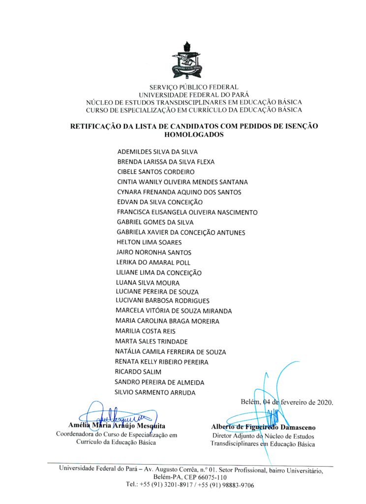 Curso de Especialização em Currículo em Gestão da Escola Básica – Retificação da lista de candidatos com pedidos de isenção homologados: